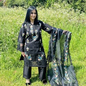 Khaddi net embroidered